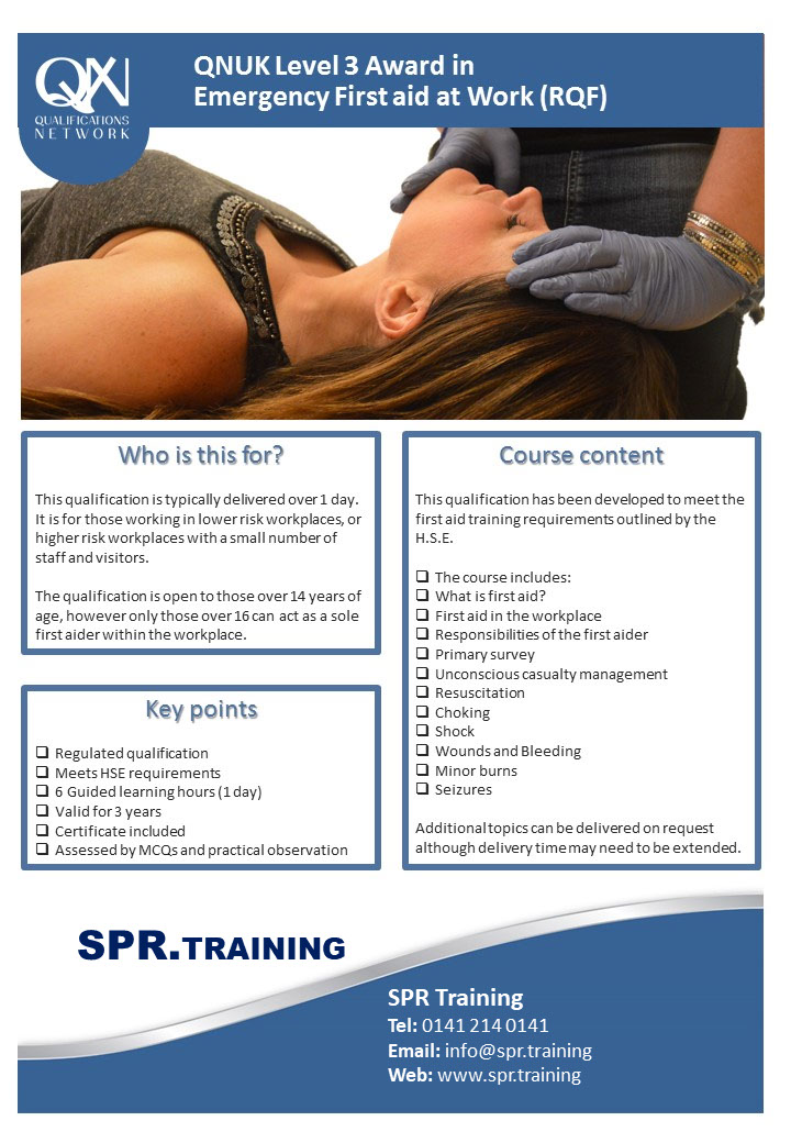 QNUK Level 3 Award in Emergency First Aid at Work (RQF)